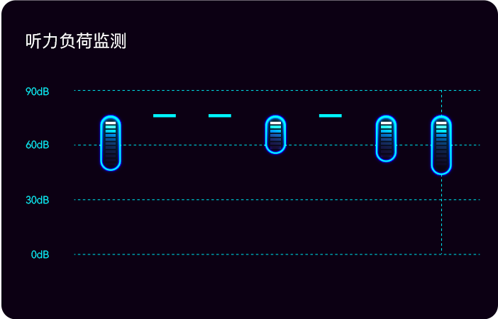 依据听力图谱进行听力的个性化音效补偿,实时监测听力负荷并预警提醒,最高