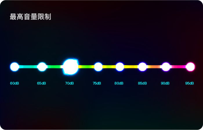 音量限制听力保护,三重听力健康防护功能,呵护听力健康。颈椎健康和久坐实